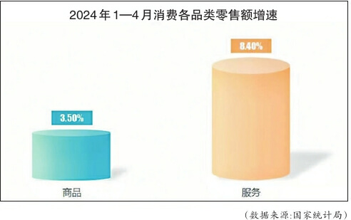 “一個(gè)明顯的趨勢(shì)是,服務(wù)消費(fèi)已經(jīng)成為當(dāng)下消費(fèi)市場(chǎng)新的潮流?!敝袊?guó)社會(huì)科學(xué)院財(cái)經(jīng)戰(zhàn)略研究院研究員李勇堅(jiān)認(rèn)為,我國(guó)居民消費(fèi)需求正從生存型向發(fā)展型、品質(zhì)型升級(jí),從以商品消費(fèi)為主向服務(wù)消費(fèi)與商品消費(fèi)并重轉(zhuǎn)變。國(guó)家統(tǒng)計(jì)局?jǐn)?shù)據(jù)顯示,今年1至4月份,服務(wù)類零售額同比增長(zhǎng)8.4%,比商品類零售額3.5%的增速高1倍。